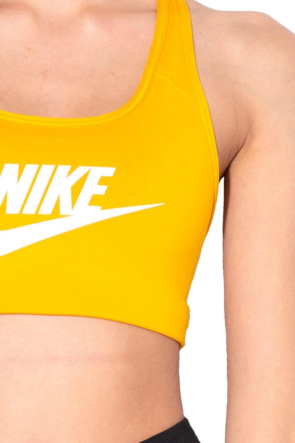 Универсальный топ-бра Classic Swoosh Futura от бренда Nike – это то, что нужно для современной девушки. Оптимальный уровень поддержки в сочетании с элегантным дизайном, делают такую модель незаменимым вариантом практически для любого спорта. Яркий желтки цвет модели поможет выделиться среди остальных спортсменов и подарит заряд положительных эмоций на всю тренировку. Женственный круглый вырез завершает образ. Фирменная технология материала Dri-FIT, позволяет эффективно бороться с лишней влагой, выводя ее на поверхность ткани, где она быстро испаряется. Вы сможете полностью сконцентрироваться на процессе тренировок и оставаться сухой. Компрессионная посадка помогает быстрее разогреть мышцы и не дает им быстро остывать. Мягкий и эластичный пояс под грудью обеспечивает дополнительную поддержку груди. Эластичная мягкая ткань приятно ощущается на теле, а плоские швы не доставляют дискомфорта во время физической активности и не натирают кожу. Классическая Т-образная спинка открывает плечи и позволяет надевать топ под майку борцовку. Топ-бра можно носить комплектом, как самостоятельный элемент гардероба, так и надевать в сочетании со спортивной майкой. По центру нанесен логотип бренда Nike, который завершает фирменный дизайн.Особенности и преимущества: