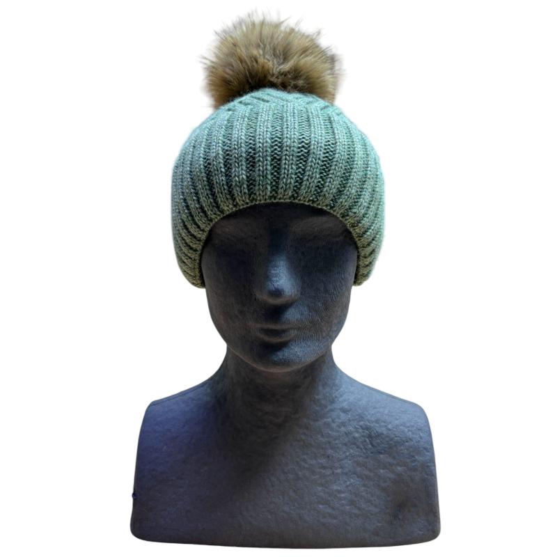 Шапка 14621 с помпоном зеленый